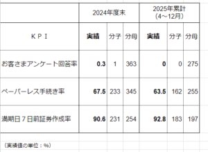 2025年度 KPI(重要業績評価指標)取り組み指標